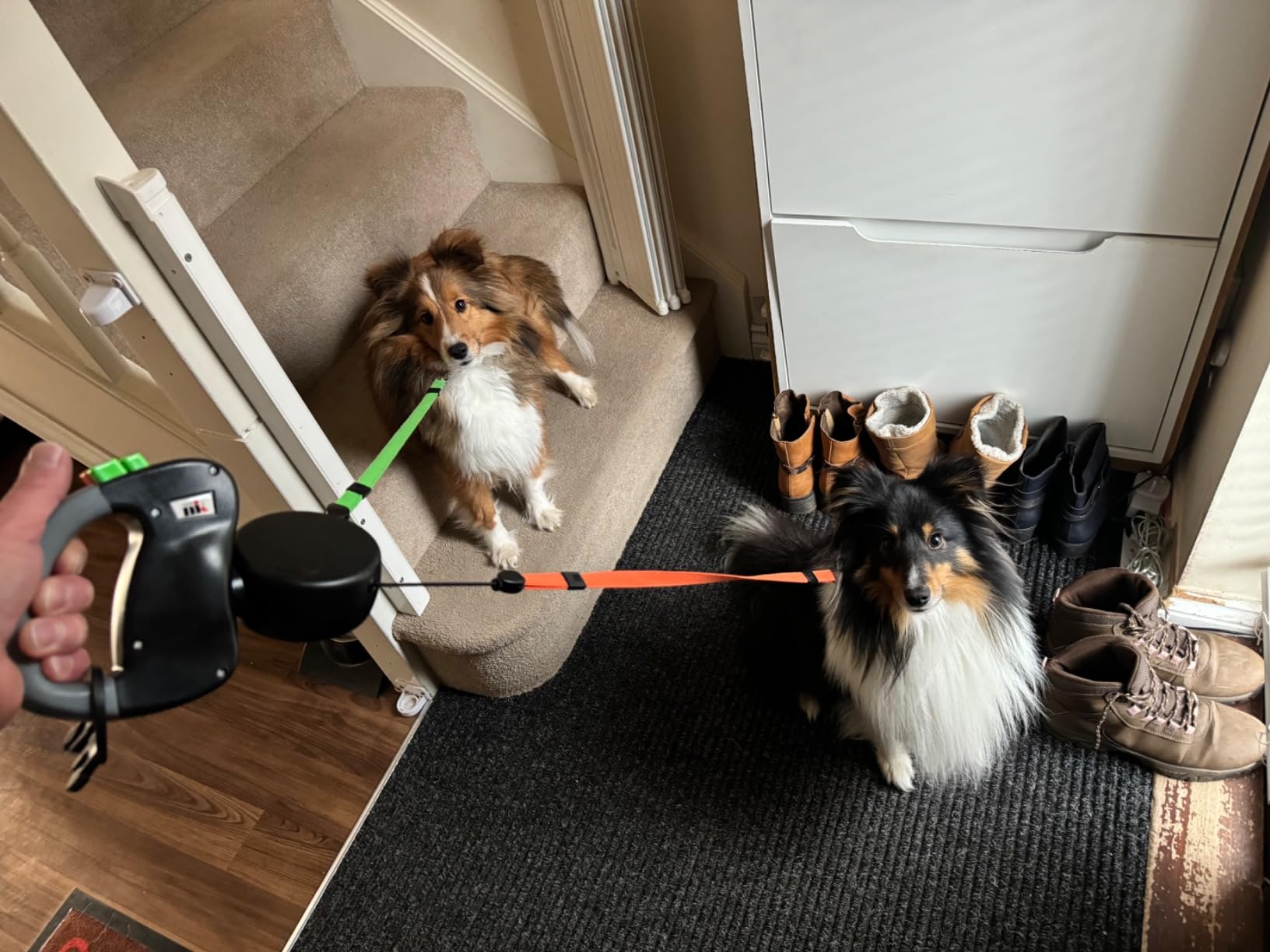 Laat je niet langer in de knoop leggen door losse lijnen! Ontmoet DubbelDraf, dé intrekbare dubbele lijn voor jouw trouwe viervoeters. Geniet samen van zorgeloze wandelingen zonder gedoe.
