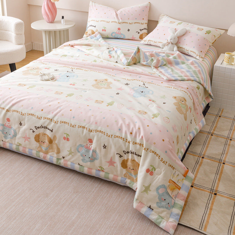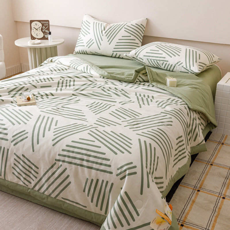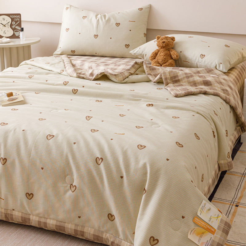 Onze 100% katoenen deken is ademend, zacht én natuurlijk temperatuurregulerend. In de zomer voelt hij luchtig en koel aan, terwijl hij je ’s winters juist aangenaam warm houdt — zonder oververhitting of klamme nachten.